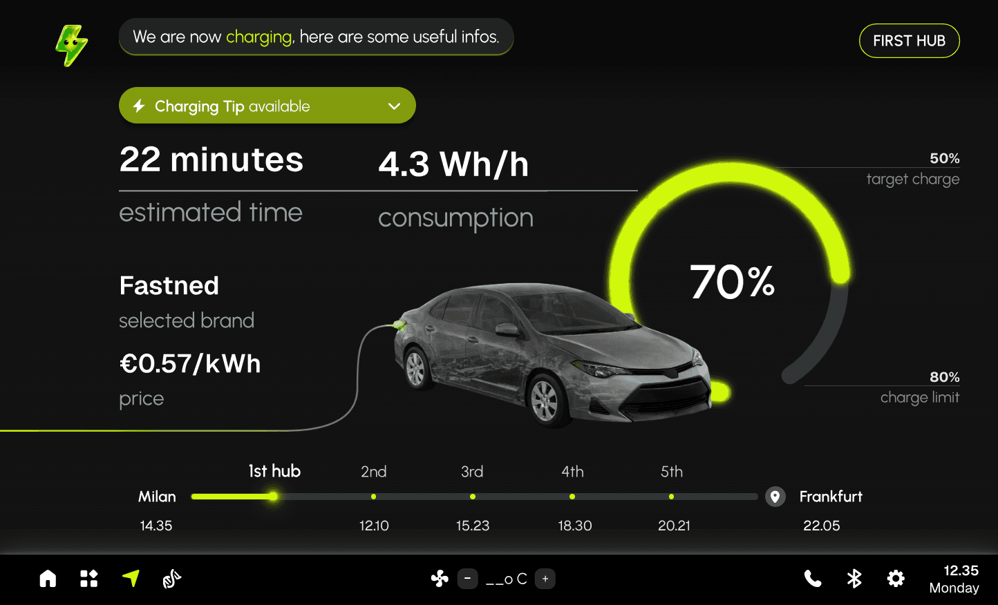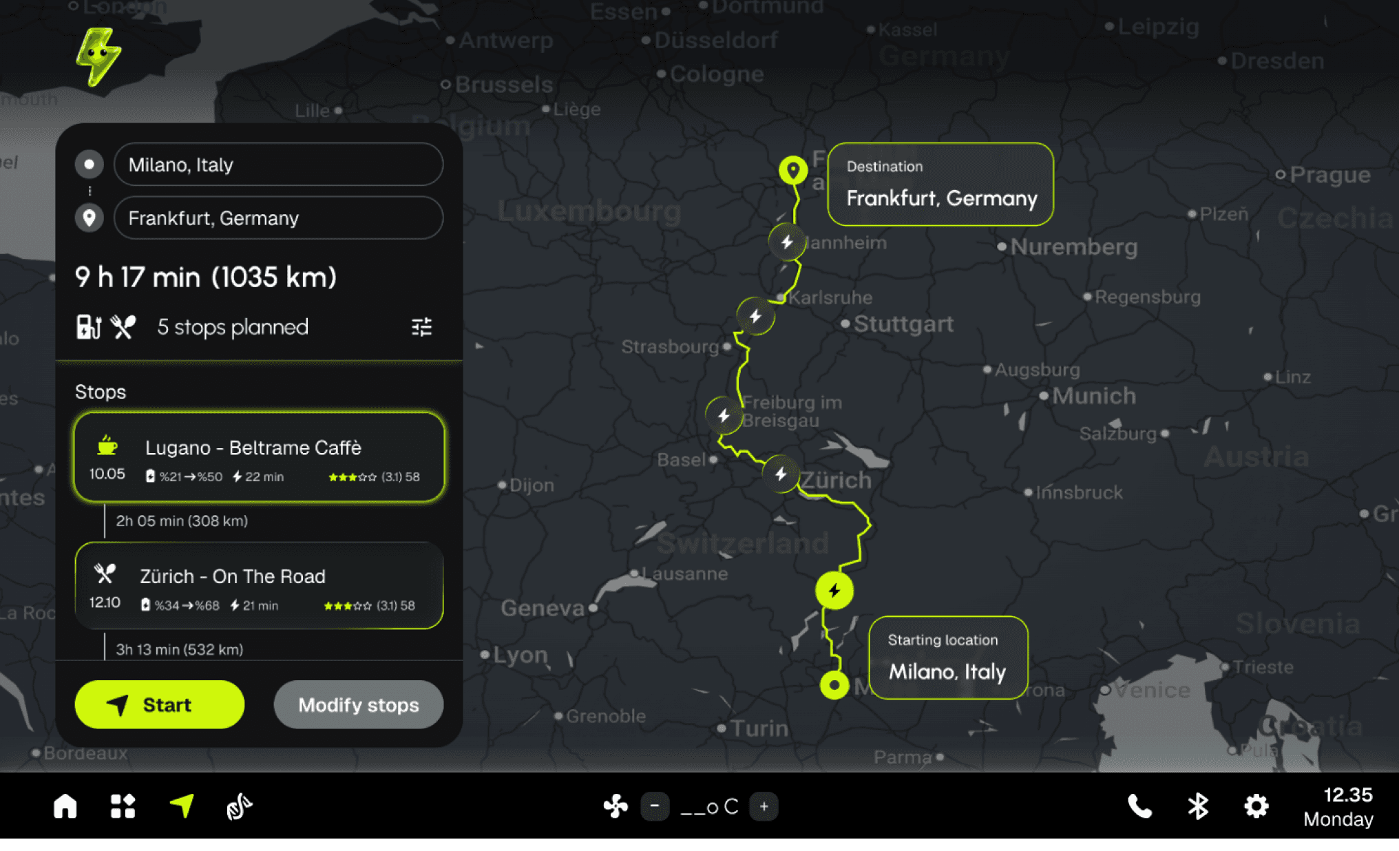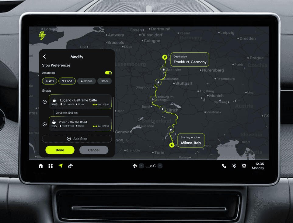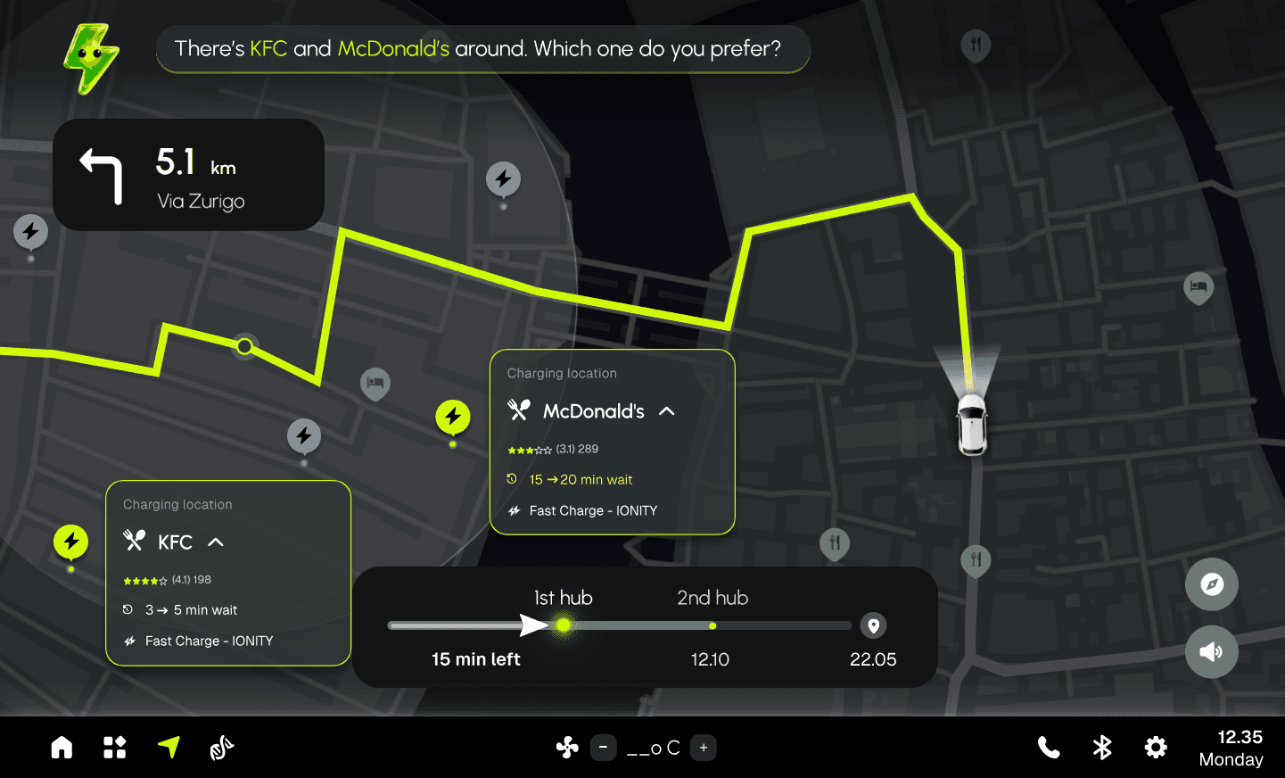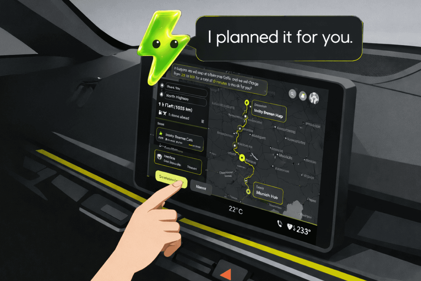 EVA learns individual driving habits and synchronizes charging stops with personal lifestyle preferences; such as favorite restaurant brands or preferred break durations.